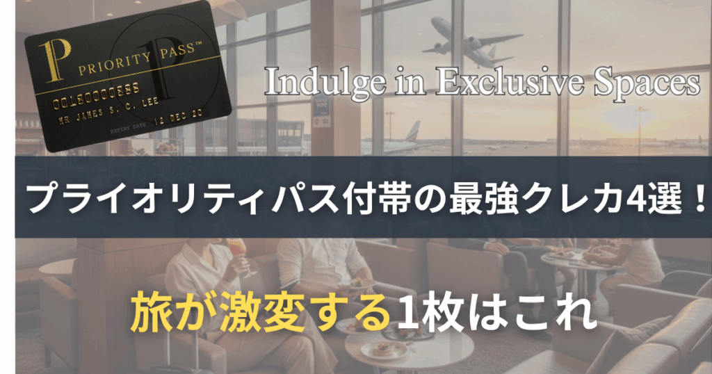 「ワイモバイルの月額料金、もっと安くならないかな…」 「どうせなら、お得なキャンペーンを使って乗り換えたい!」 そうお考えのあなたに、今日は衝撃的にお得な情報をお届けします。 結論から言うと、ワイモバイルの「シンプル3 M/L」プランを利用中、も... クレジットカード【2025年最新】プライオリティパス付帯クレジットカードおすすめ4選!年会費・特典を徹底比較