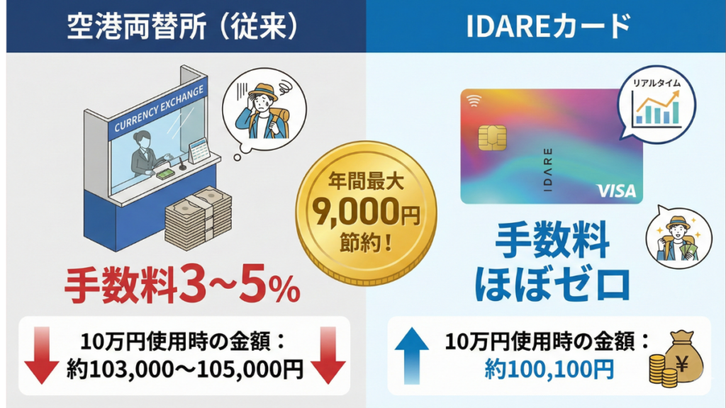IDAREカードの最大のメリットは「海外事務手数料がほぼゼロ」!