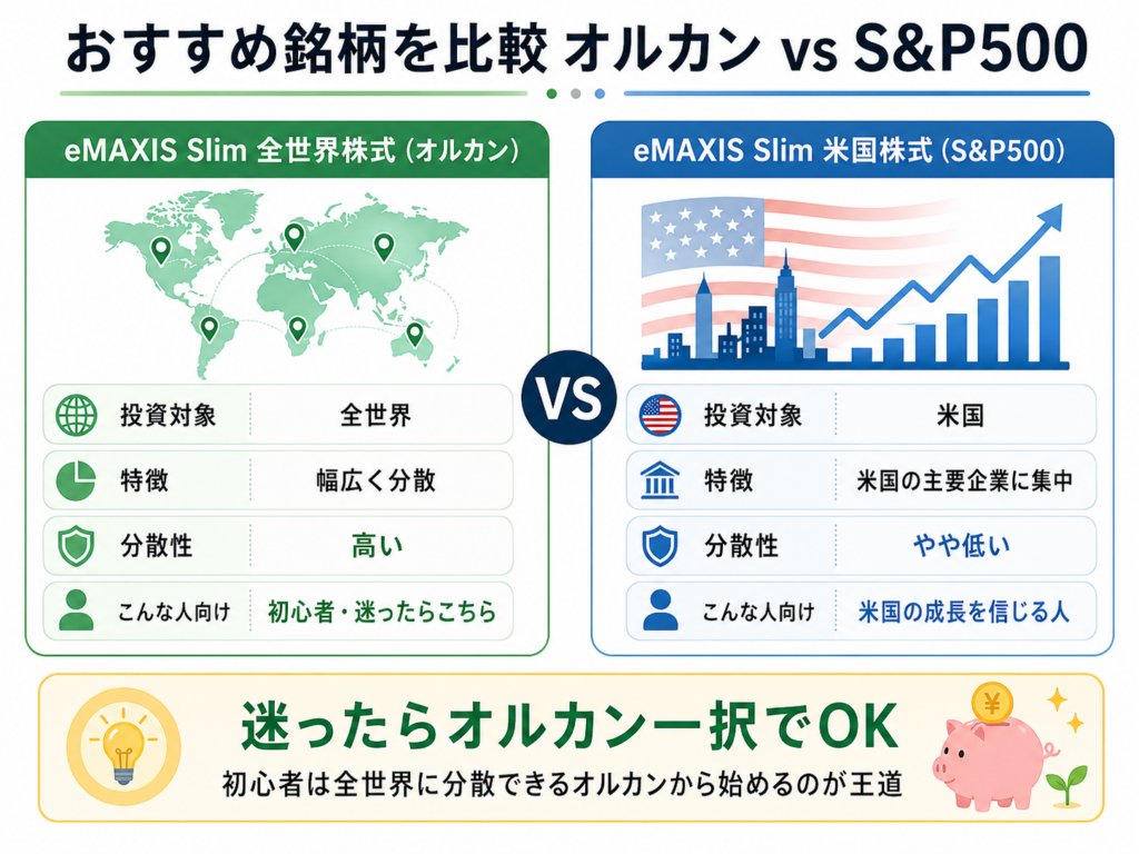 • 初心者はオルカン(eMAXIS Slim 全世界株式)のつみたてから始めるのが王道