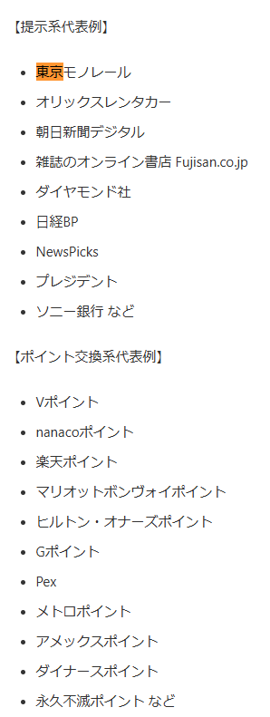 - 対象店舗の例: